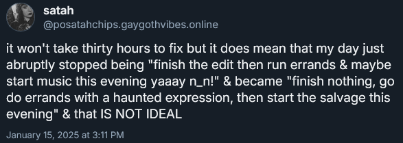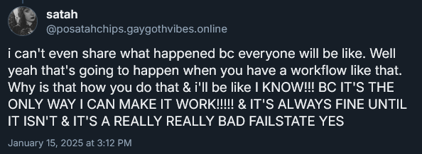 It’s Fine™. i have changed my process so that it’s less likely to explode on me in this way. also