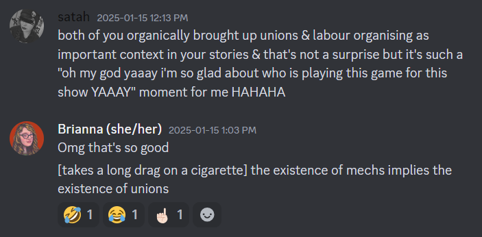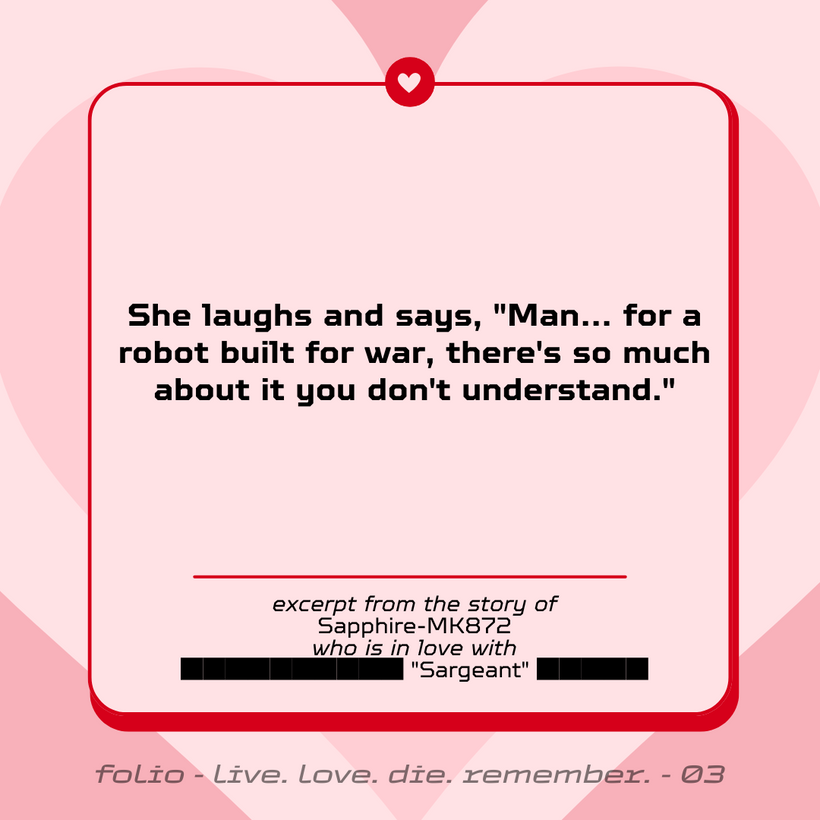 eternally grateful to dora & brianna for their contributions. i’d like to specifically shout out dora’s ability to make specific pulls from various mecha animes (as well as real world history!!) & brianna’s habit of going into fully voice-acted in-character dialogue. it’s hard for me to imagine this specific series with any other guests & i’m so happy this is how the show spent the majority of its february 🤖🌈💌