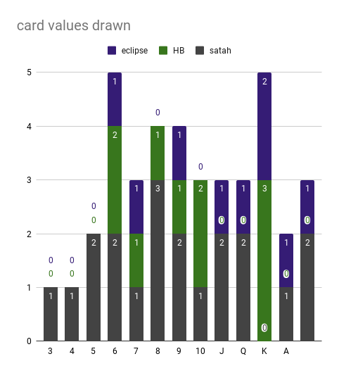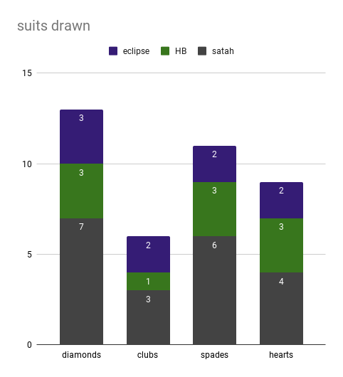 the final episode of our games of unplugged survivor just went out– here are some charts about the cards we pulled & the dice we rolled!!